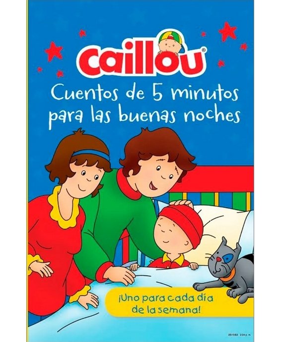 Acurrúcate y encuentra en un solo libro ilustrado todos tus cuentos favoritos de Caillou para antes de ir a dormir. 7 Cuentos * Mis amigos de la guardería * Caillou aprende a nadar * Caillou va de pesca * Caillou recoge manzanas * Caillou y la lluvia * Caillou y el gran tobogán * Caillou tiene hipo A partir de los 4 años