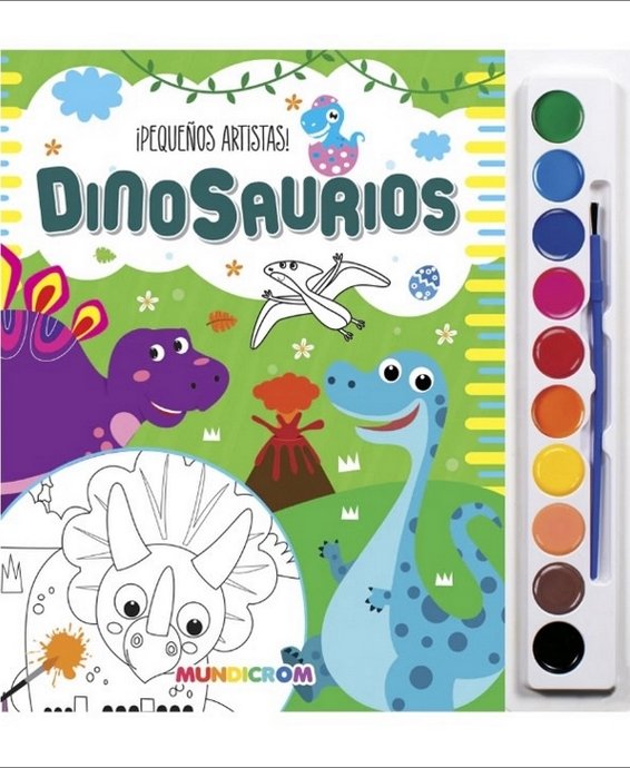 Colorea a los asombrosos Dinosaurios y aprende todo sobre cada uno de ellos. Este libro incluye 12 dibujos, una paleta de acuarelas de 10 colores, y un pincel. Además, puedes recortar cada página. ¡Colorear ahora es mucho más divertido!