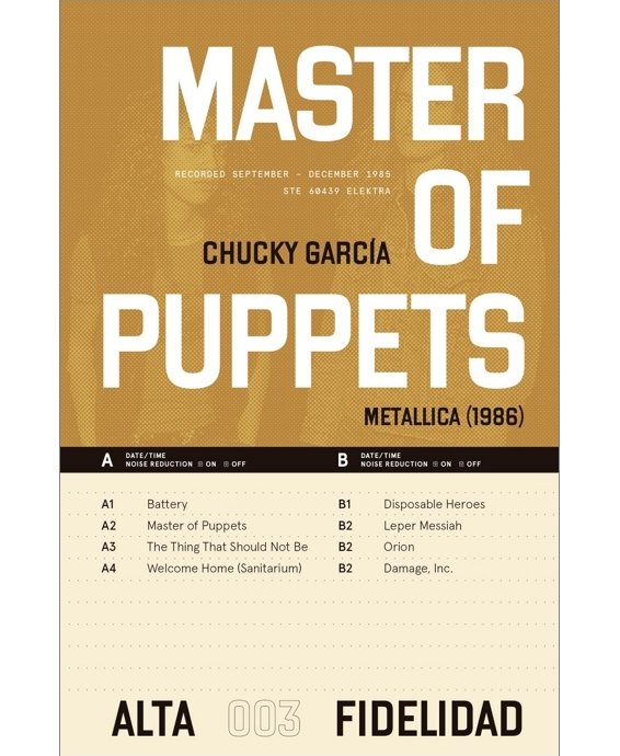 Conmovedor y radical conjunto de crónicas sobre la escena metalera bogotana y el disco más importante de Thrash. Un libro esencial para entender los inicios de la escena metalera colombiana. Siendo un adolescente, Chucky García desenterró de un antejardín un casete del álbum Master of Puppets. Así empezó a forjarse su personalidad, que ya daba muestras tempranas de radicalidad. Este libro narra las experiencias del autor asociadas a Metallica, como la vez que esta banda reunió a más de ochenta mil personas en uno de los conciertos más estrambóticos de Bogotá o las entrevistas que tuvo la oportunidad de hacerles a sus integrantes, entre otros eventos que lo marcaron para siempre.