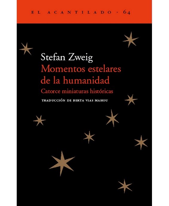 Éste es probablemente el libro más famoso de Stefan Zweig. En él lleva a su cima el arte de la miniatura histórica y literaria. Muy variados son los acontecimientos que reúne bajo el título de ?Momentos estelares?: el ocaso del imperio de Oriente, en el que la caída de Constantinopla a manos de los turcos en 1453 adquiere su signo más visible; el nacimiento de ?El Mesías? de Händel en 1741; la derrota de Napoleón en 1815; el indulto de Dostoievski momentos antes de su ejecución en 1849; el viaje de Lenin hacia Rusia en 1917… «Cada uno de estos momentos estelares?escribe Stefan Zweig con acierto?marca un rumbo durante décadas y siglos», de manera que podemos ver en ellos unos puntos clave de inflexión de la historia, que leemos en estas catorce miniaturas históricas con la fascinación que siempre nos produce Zweig.