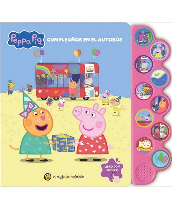 Cumpleaños en el Autobús invita a los pequeños a celebrar junto a Peppa y sus amigos en una fiesta muy especial. Este libro con sonido, equipado con un panel de alegres efectos sonoros, convierte la lectura en una experiencia interactiva y estimulante. Al presionar los botones, los niños descubren los divertidos sonidos que dan vida a esta celebración sobre ruedas. Con su resistente diseño en cartón, este libro no solo entretiene, sino que también estimula la imaginación y la curiosidad, ofreciendo una forma encantadora de disfrutar de una fiesta de cumpleaños en cualquier momento.