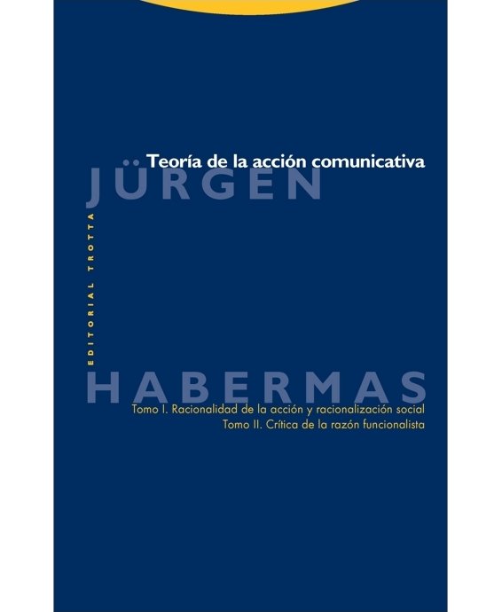 En palabras de su autor, «la teoría de la acción comunicativa permite una categorización de la trama de la vida social con la que se puede dar razón de las paradojas de la modernidad». «Apropiación sistemática de la historia de la teoría sociológica», este libro constituye uno de los mejores análisis de la Europa de posguerra y de su orden político, económico, social y cultural. Cuando algunos de los supuestos de ese orden empiezan a convertirse en pasado, da las claves de él y permite examinar a fondo, mirándolas al trasluz, las principales cuestiones del presente.